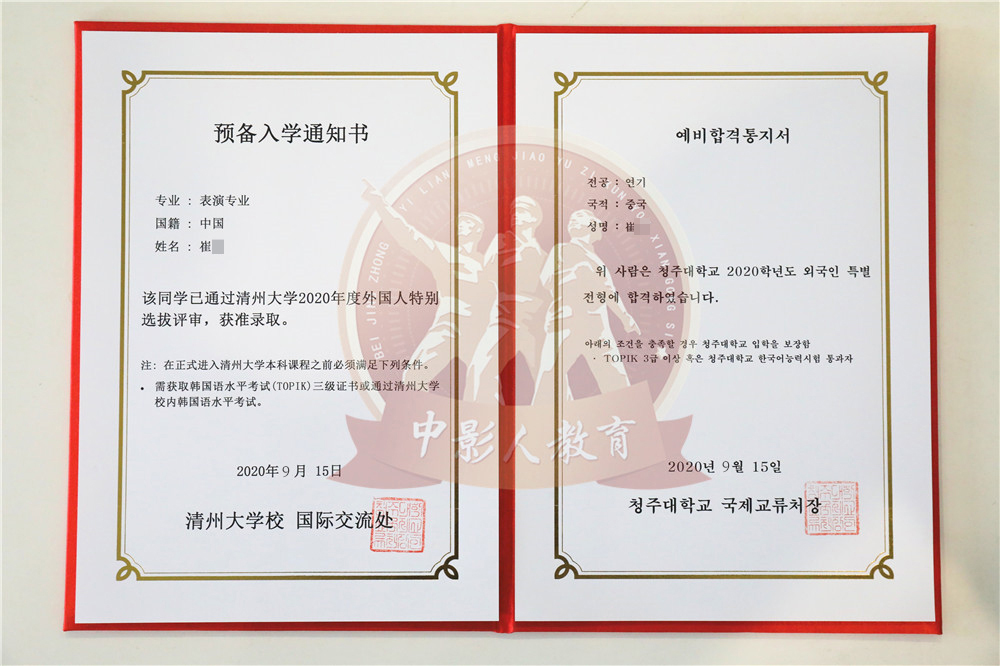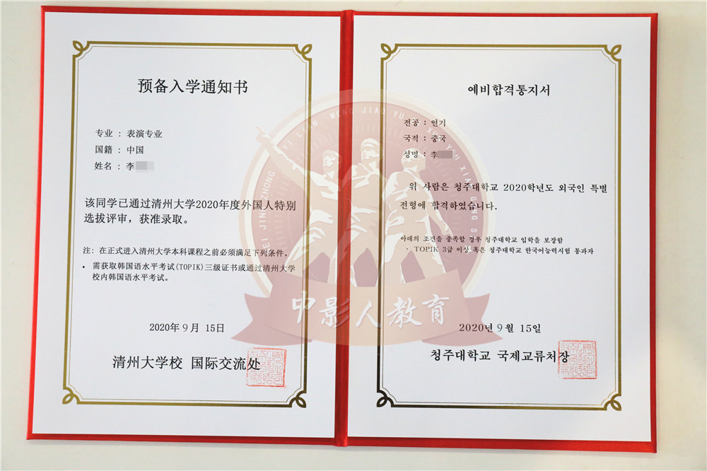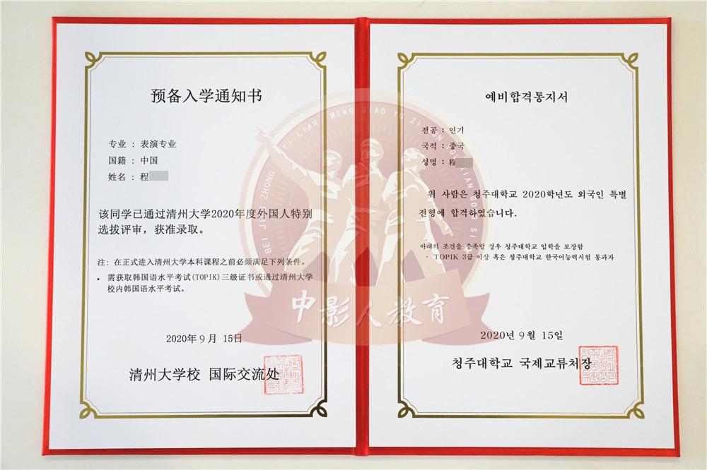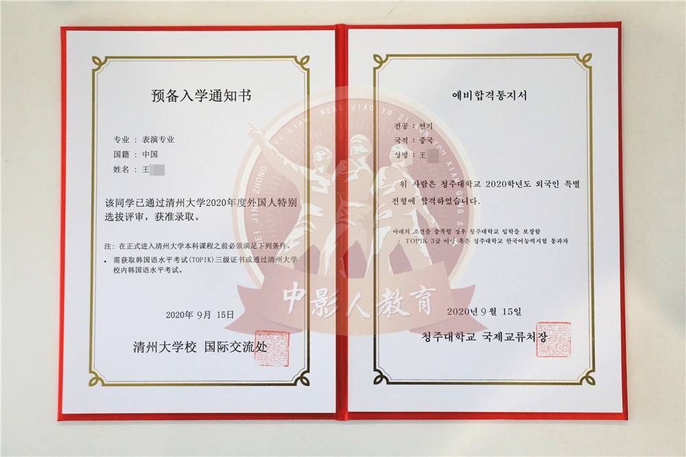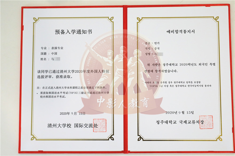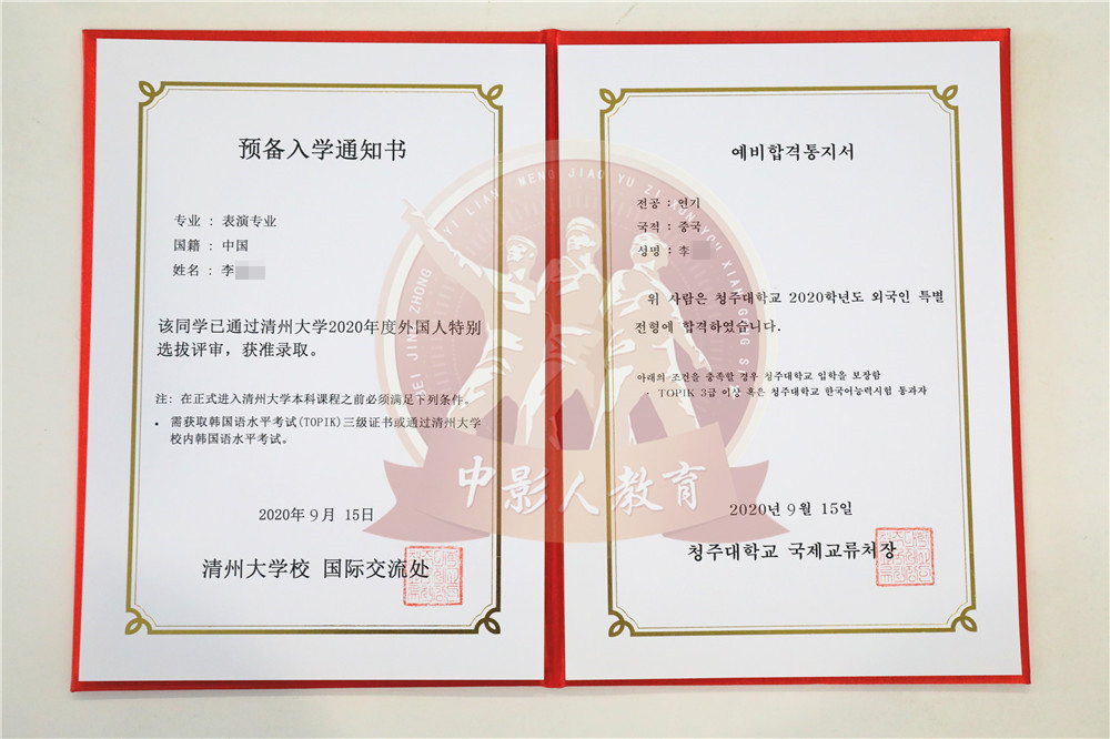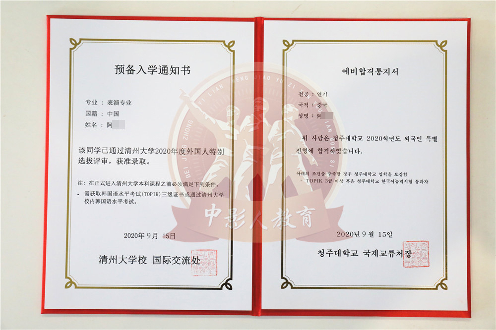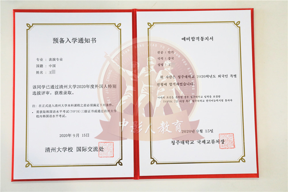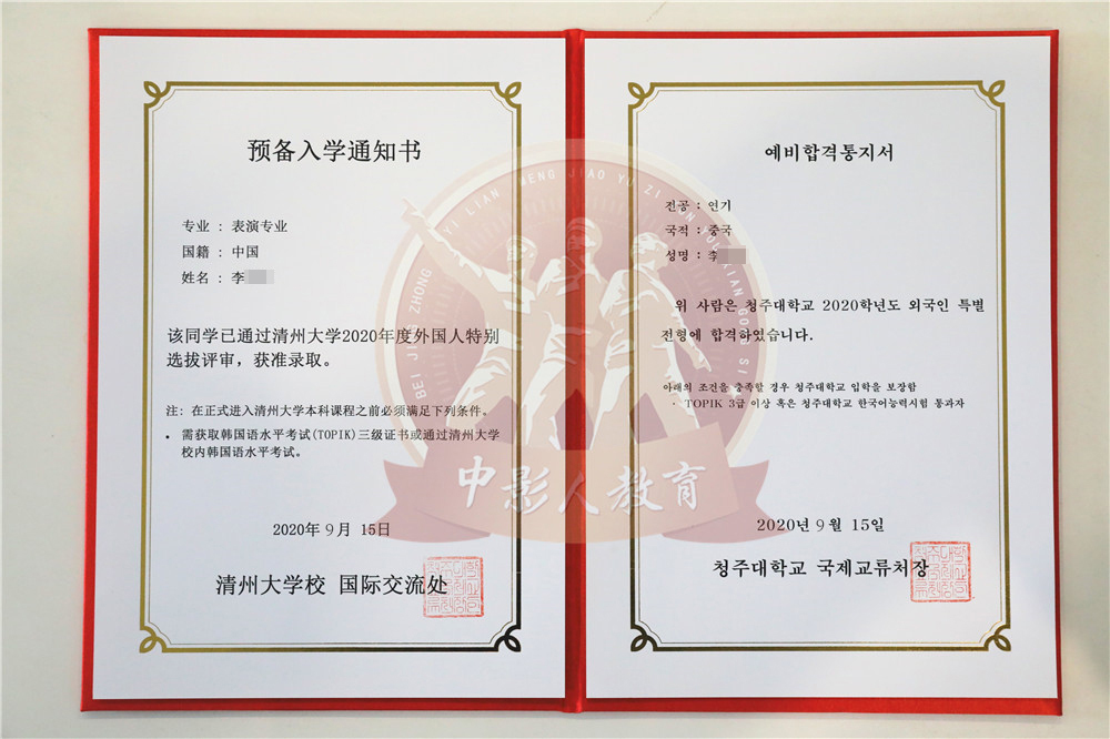 中影人教育,作為韓國清州大學國 內唯一指定合作單位,深度合作, 錄取率高。