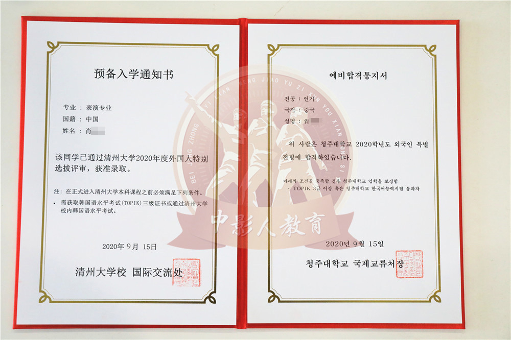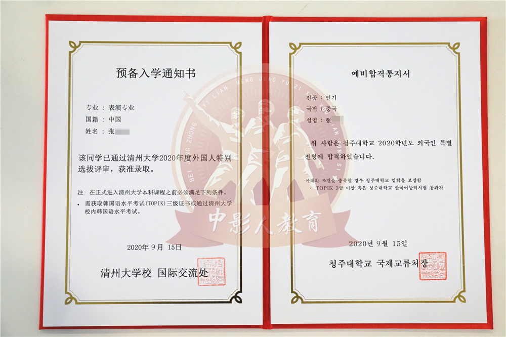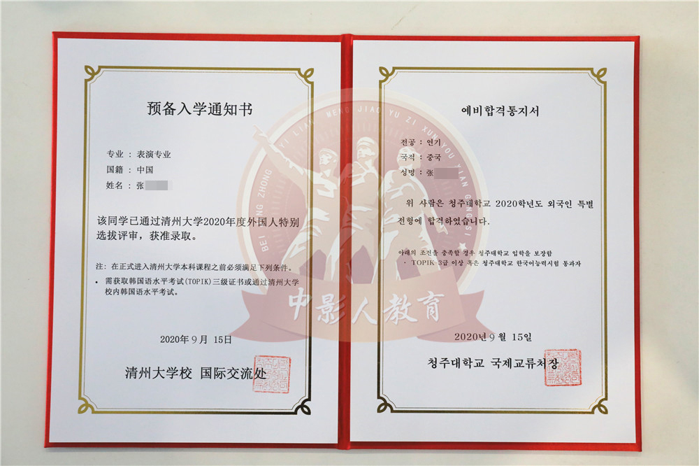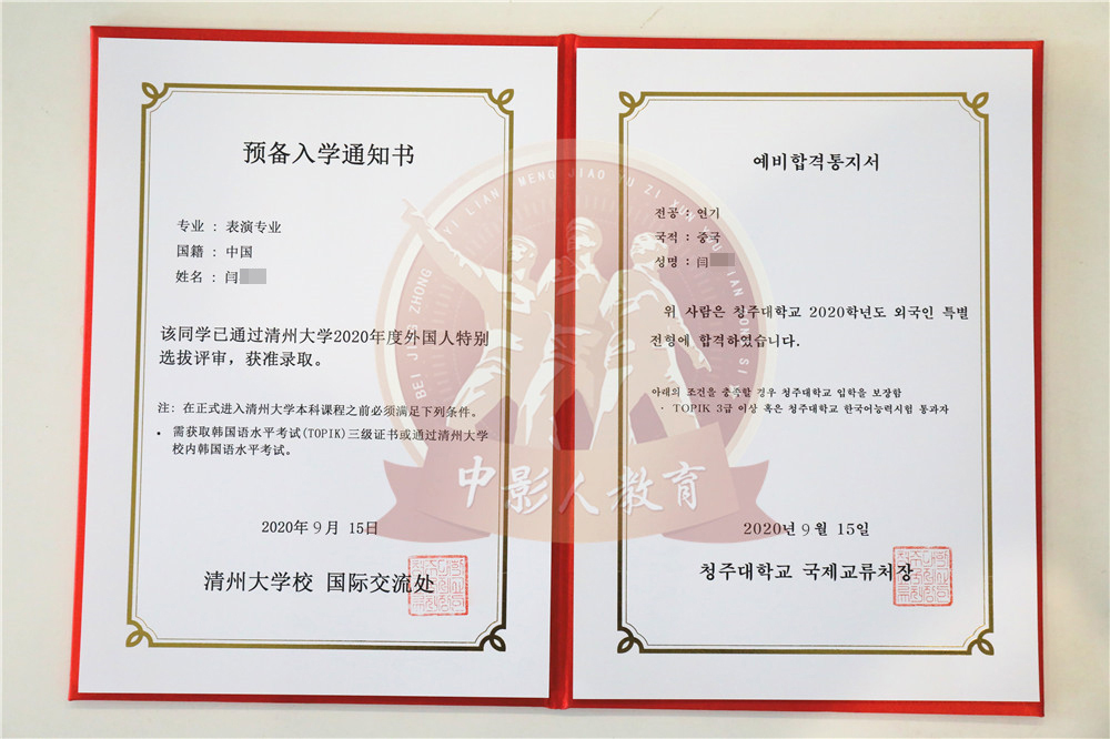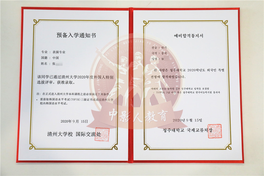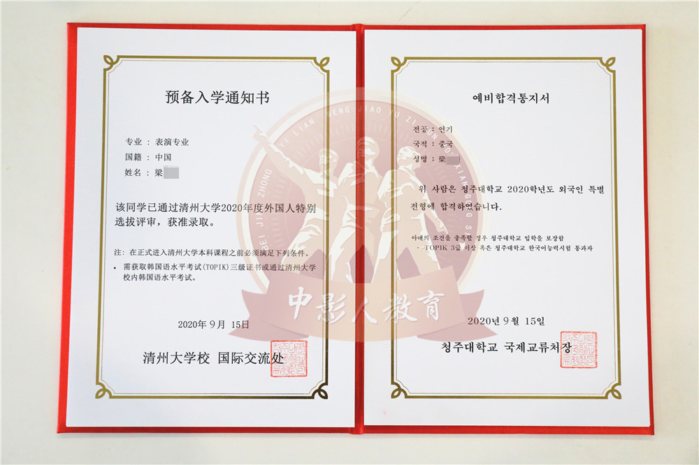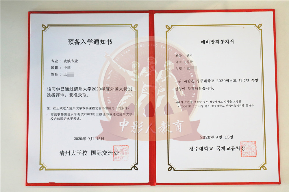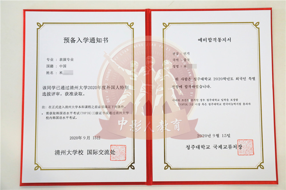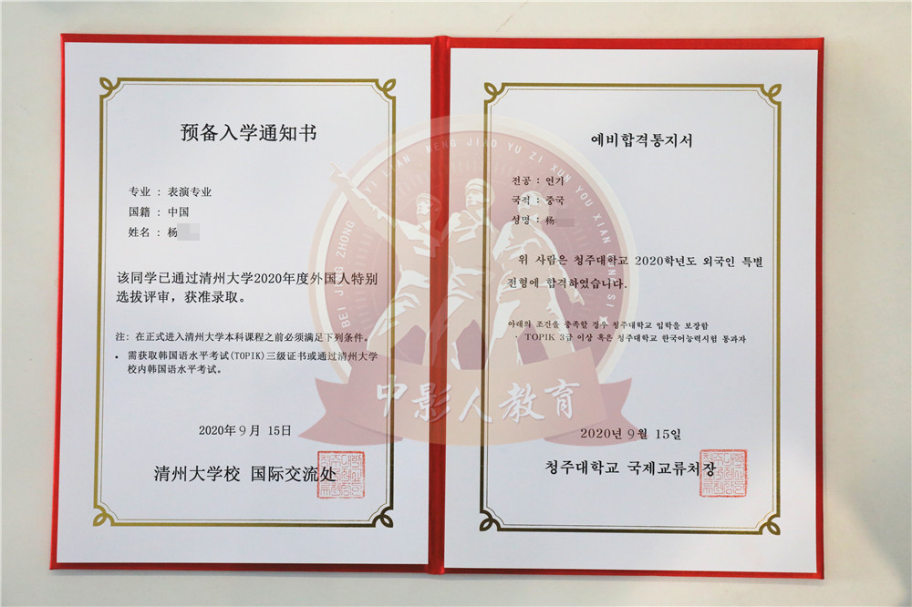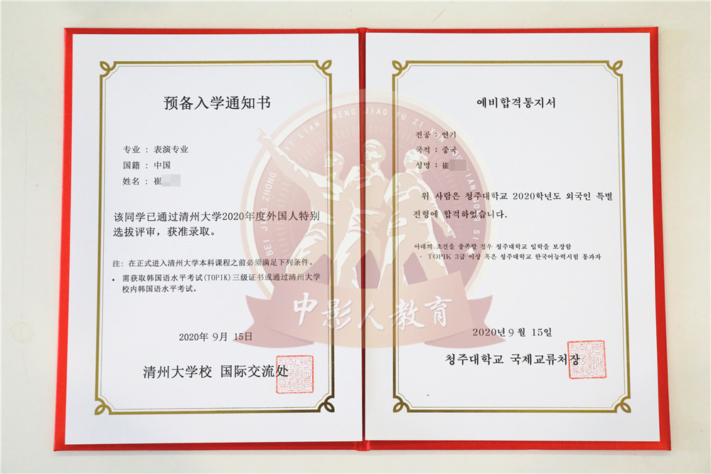中影人教育,作為韓國清州大學國 內唯一指定合作單位,深度合作, 錄取率高。
