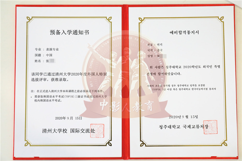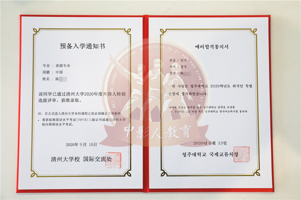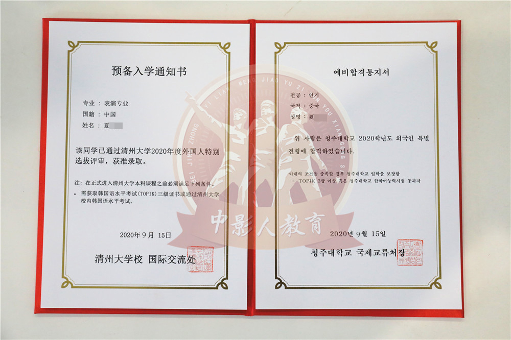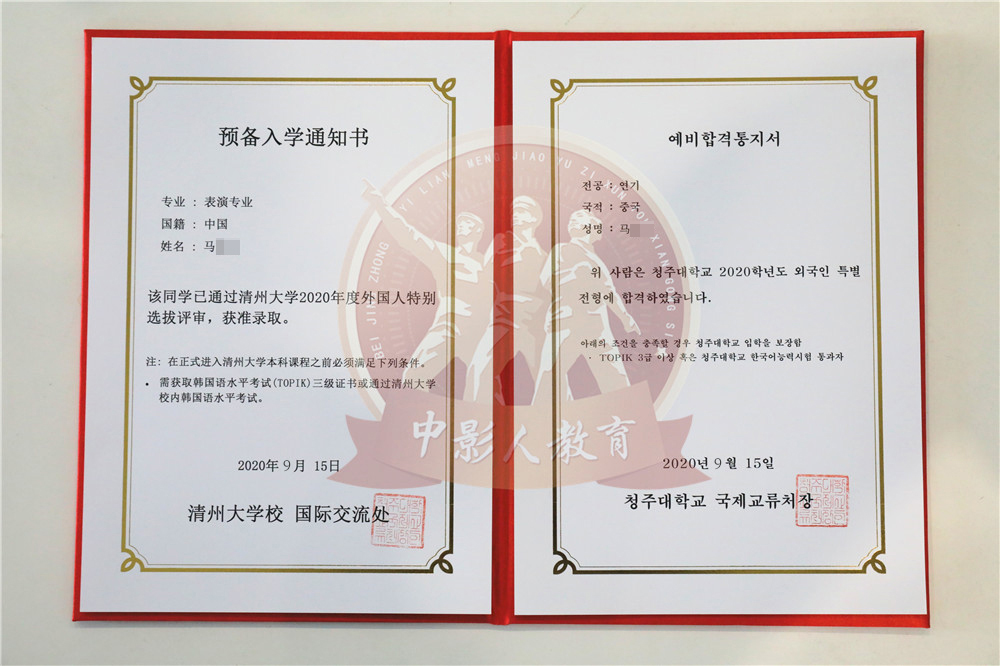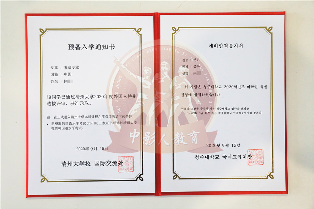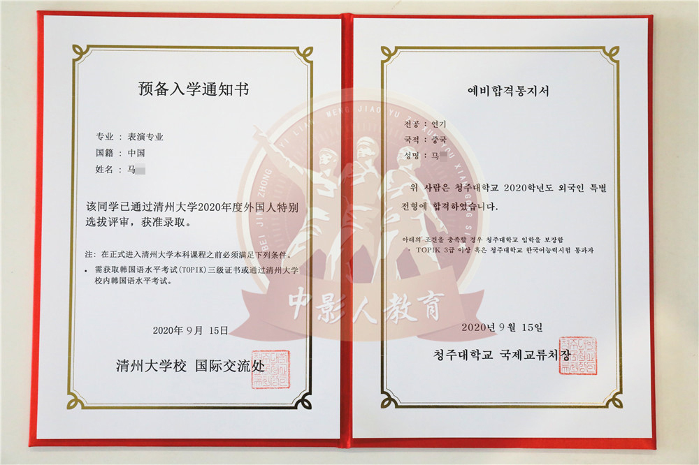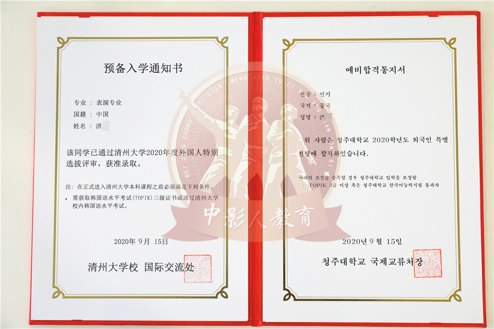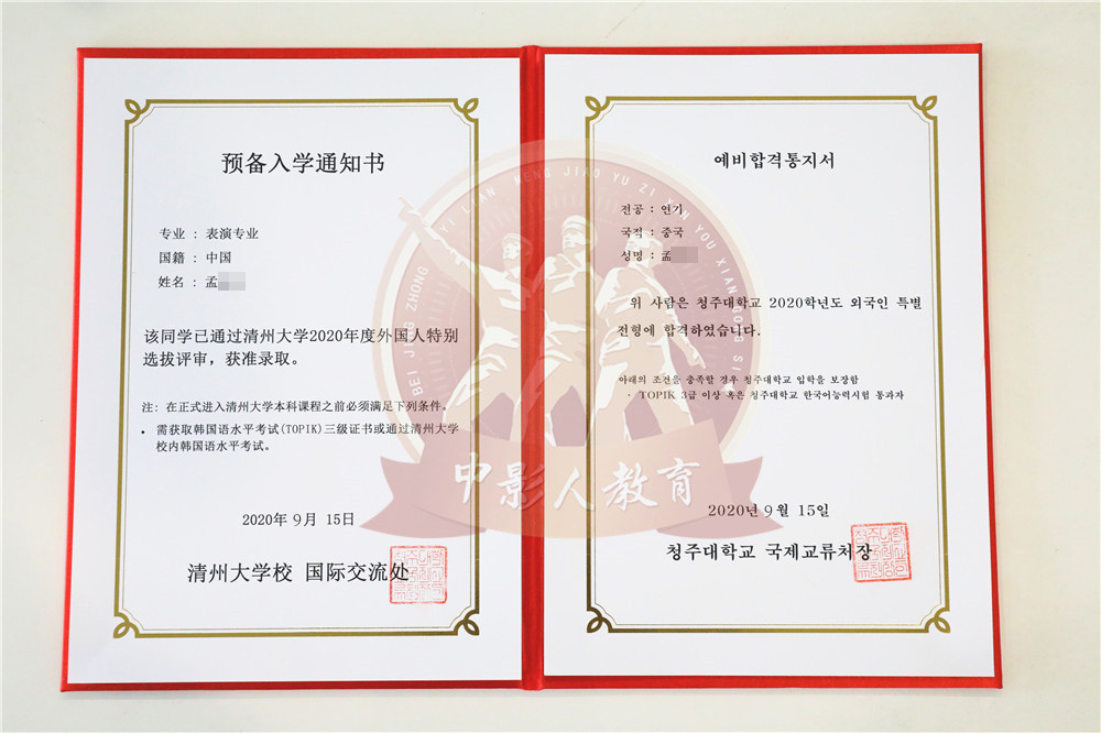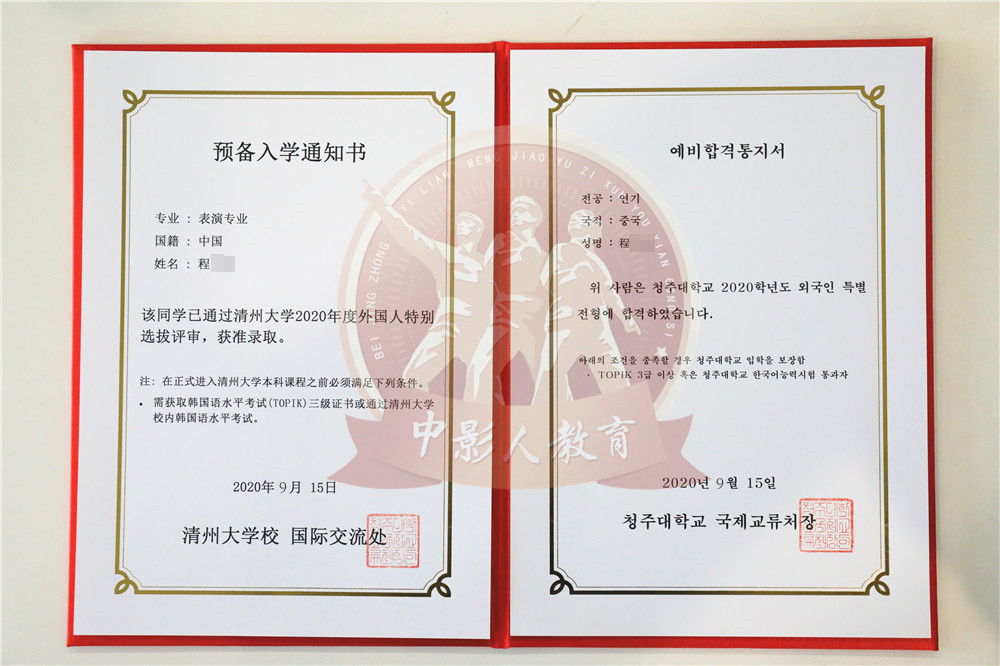 中影人教育,作為韓國清州大學國 內唯一指定合作單位,深度合作, 錄取率高。