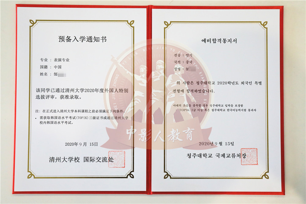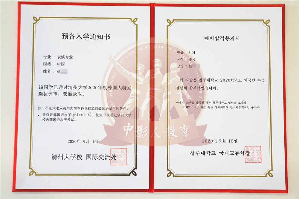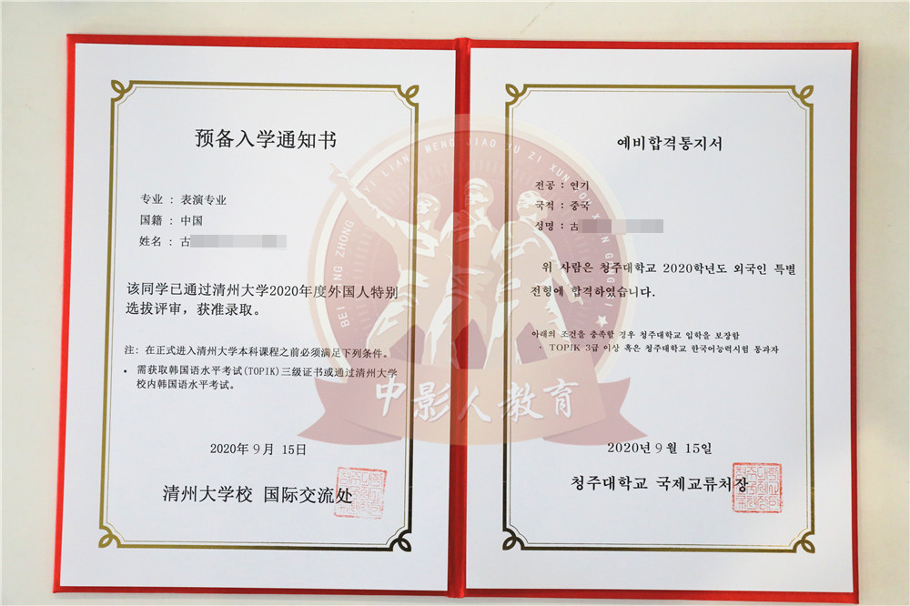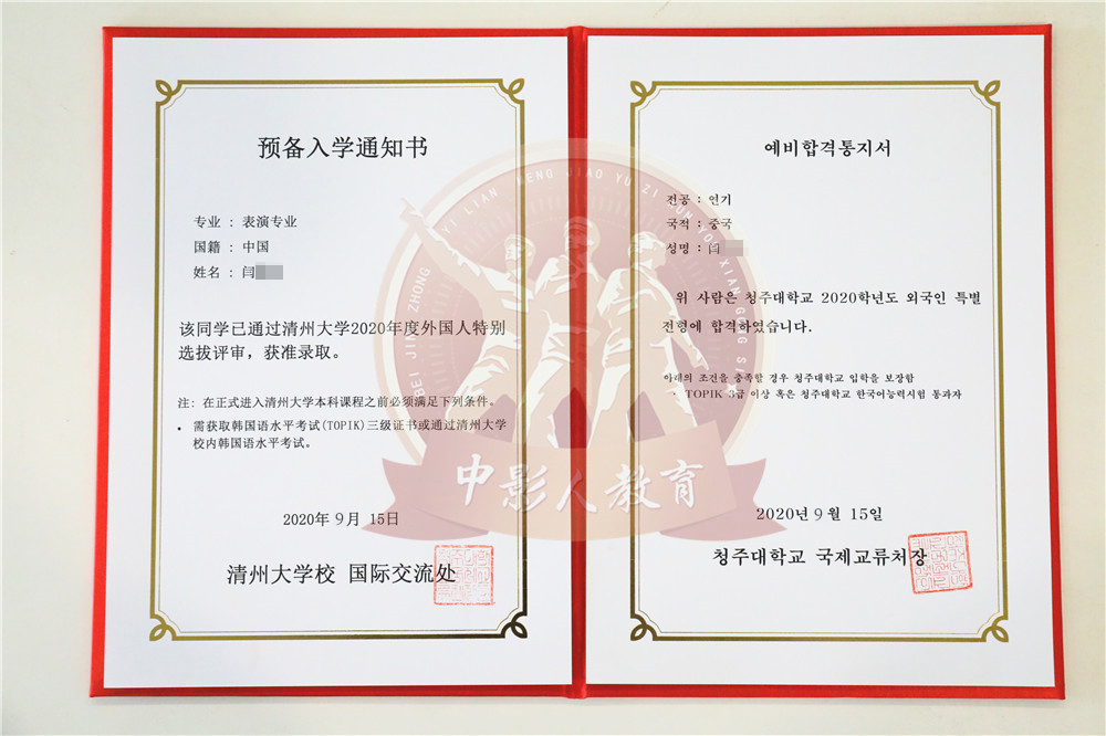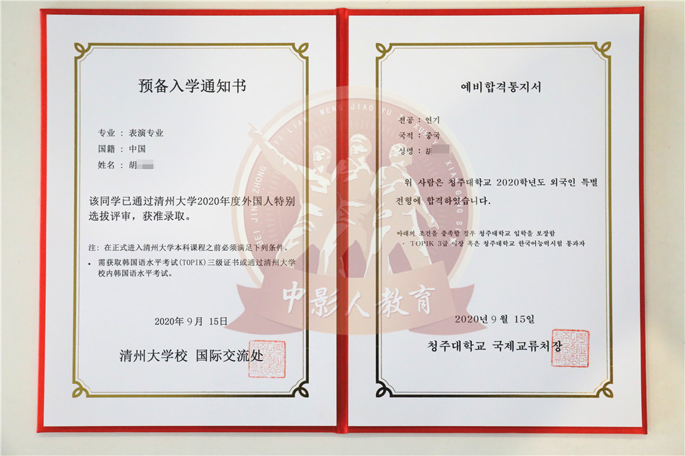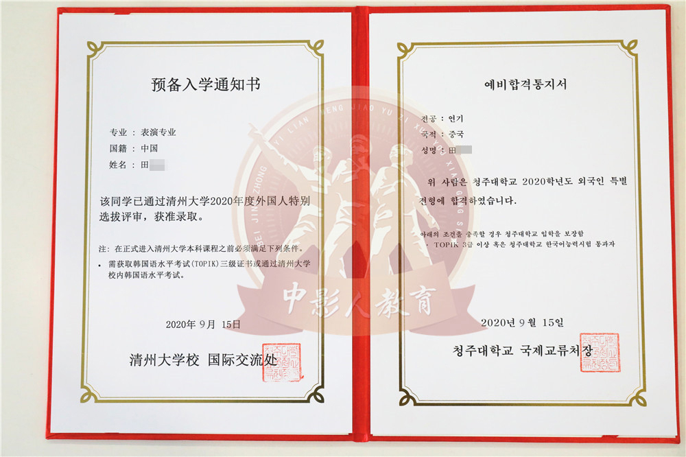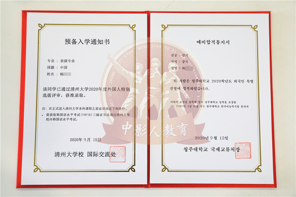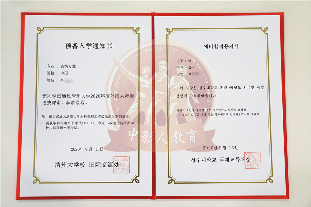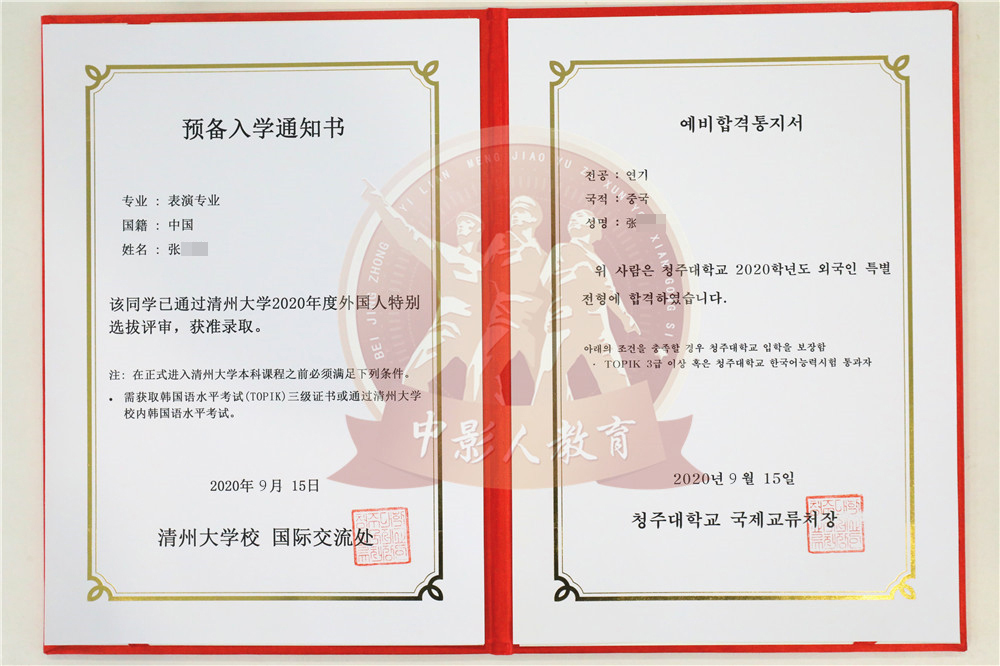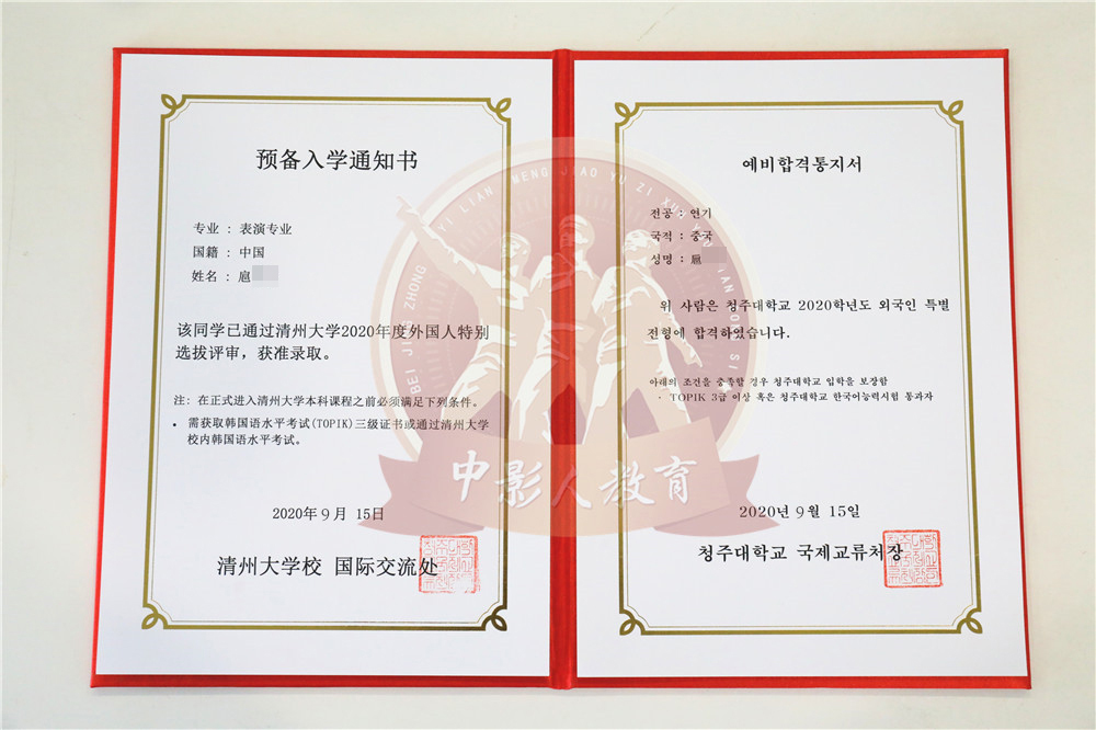 中影人教育,作為韓國清州大學國 內唯一指定合作單位,深度合作, 錄取率高。