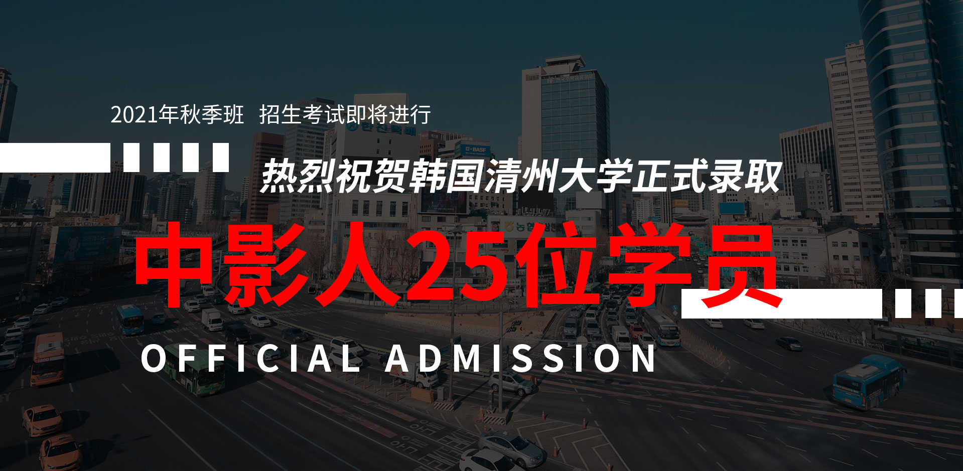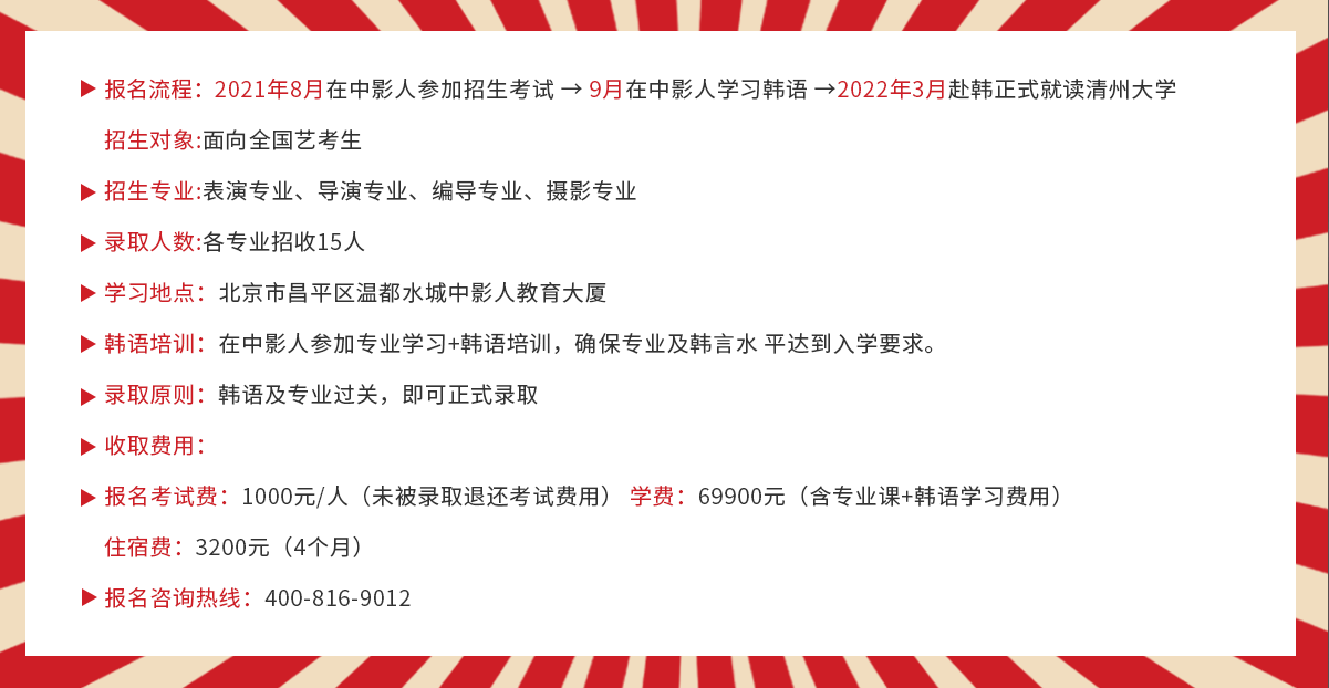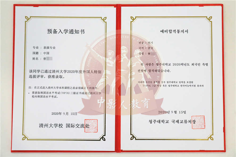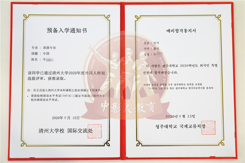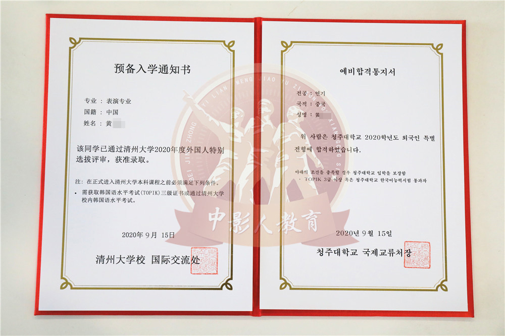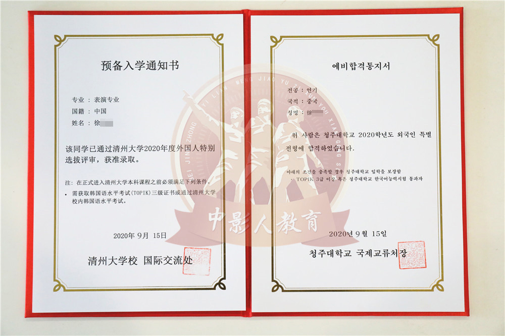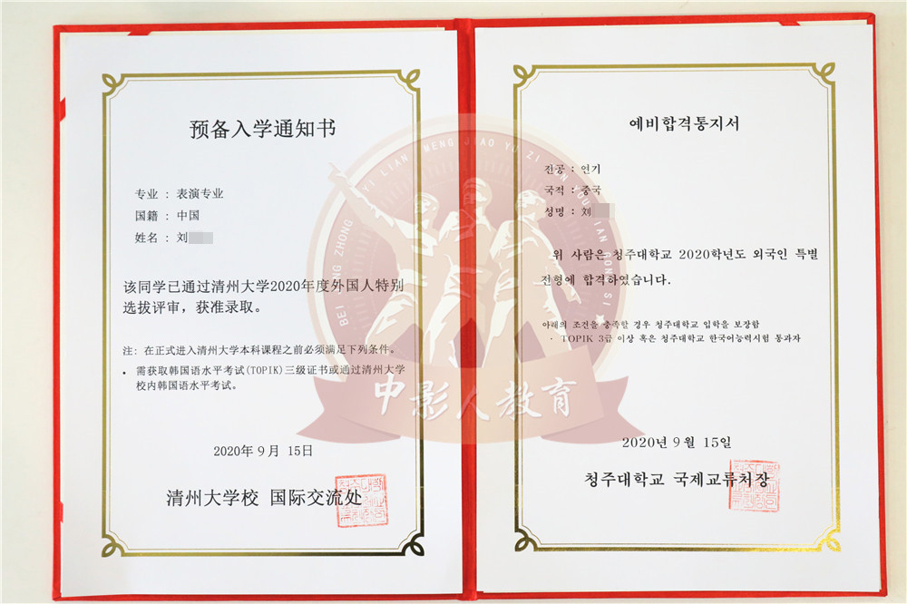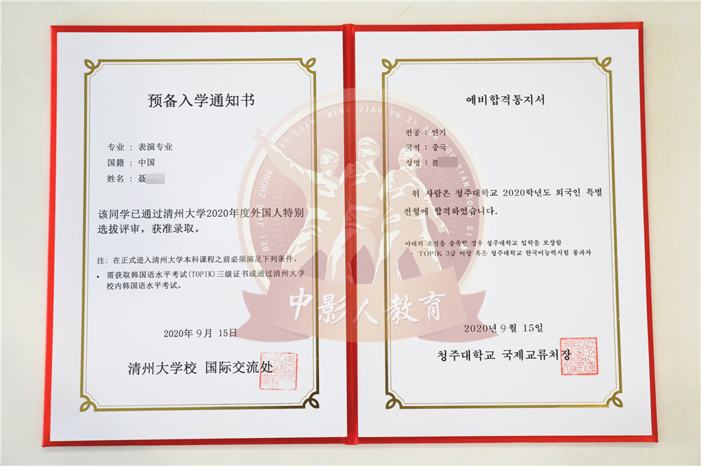 中影人教育,作為韓國清州大學國 內唯一指定合作單位,深度合作, 錄取率高。