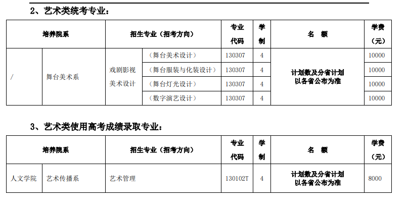 三、報考須知 (一)報考條件 1、遵守中華人民共和國憲法和法律,符合生源所在省(區(qū)、市)2025 年高考報名條 件。 2、我院招生專業(yè)均屬于藝術(shù)類專業(yè),除藝術(shù)管理專業(yè)及戲劇影視美術(shù)設(shè)計專業(yè)外, 報考其他專業(yè)者均需參加我院組織的專業(yè)校考。按照教育部文件要求,我院僅面向省級 統(tǒng)考合格生源組織專業(yè)校考,考生須獲得省(區(qū)、市)級統(tǒng)考相應(yīng)科類合格,各專業(yè)具 體子科類對照請登錄我院官網(wǎng)查看“北京舞蹈學(xué)院 2025 年各省省統(tǒng)考子科類對照表”。 有關(guān)省級統(tǒng)考的具體事宜請咨詢高考報名地省級高招辦。 (二)報名辦法 1、我院校考實行網(wǎng)上報名及繳費,不接收現(xiàn)場報名。逾期無法補報。 2、報名時間:2025 年 1 月 9 日-2025 年 1 月 17 日,每天 9:00-21:00。 3、報名網(wǎng)址:www.bda.edu.cn,在“招生就業(yè)”之“本科招生”中點擊“2025 年北 京舞蹈學(xué)院本科招生網(wǎng)上報名系統(tǒng)”。 4、報名流程: ①注冊:使用考生本人的身份證號注冊; ②填報信息:填寫真實信息,上傳近期一寸彩色證件照片一張,同時上傳有效身份證 正反面及高考報名準(zhǔn)考證/信息確認(rèn)單的掃描件; 培養(yǎng)院系 招生專業(yè)(招考方向) 專業(yè) 代碼 學(xué) 制 名 額 學(xué)費 (元) / 舞臺美術(shù)系 戲劇影視 美術(shù)設(shè)計 (舞臺美術(shù)設(shè)計) 130307 4 計劃數(shù)及分省計劃 以各省公布為準(zhǔn) 10000 (舞臺服裝與化裝設(shè)計) 130307 4 10000 (舞臺燈光設(shè)計) 130307 4 10000 (數(shù)字演藝設(shè)計) 130307 4 10000 培養(yǎng)院系 招生專業(yè)(招考方向) 專業(yè) 代碼 學(xué) 制 名 額 學(xué)費 (元) 人文學(xué)院 藝術(shù)傳播系 藝術(shù)管理 130102T 4 計劃數(shù)及分省計劃 以各省公布為準(zhǔn) 8000 2025 年本科招生簡章 5 / 22 ③選擇報考專業(yè)(招考方向),考生僅限兼報兩個專業(yè)(招考方向); ④網(wǎng)上繳費; ⑤初試無需打印準(zhǔn)考證,現(xiàn)場終(復(fù))試網(wǎng)上打印準(zhǔn)考證時間另行通知。 5、收費標(biāo)準(zhǔn):按招考方向(或平臺考試)收取,初試費 100 元、復(fù)試費 80 元、終 試費 80 元。所有費用均在網(wǎng)上繳納,不接收現(xiàn)場繳費。進(jìn)入復(fù)試、終試的考生,須根據(jù) 招辦通知時間及時登陸報名系統(tǒng)繳納相關(guān)費用,以免延誤考試。 (三) 注意事項: 1、首次登錄報名系統(tǒng)前請務(wù)必查看《2025 年北京舞蹈學(xué)院本科招生簡章》,并按 照提示認(rèn)真操作。個人信息在提交前請認(rèn)真核對,一旦提交成功并完成支付后,無法修 改且不予退費。如需增報專業(yè)或報考方向,可在網(wǎng)上報名有效時間段內(nèi)登錄已有賬戶進(jìn) 行相關(guān)操作。 2、因填報虛假或錯誤信息、未完成繳費、未打印“專業(yè)考試準(zhǔn)考證”等情況,導(dǎo)致 無法參加考試、專業(yè)考試成績作廢、《錄取通知書》無法送達(dá)等后果,均由考生本人承 擔(dān)全部責(zé)任。 3、考生在完成報名繳費后,請務(wù)必于現(xiàn)場復(fù)試、現(xiàn)場終試前登錄系統(tǒng)自助打印“專 業(yè)考試準(zhǔn)考證”(打印開放時間根據(jù)現(xiàn)場考試時間另行網(wǎng)上通知)。參加考試時,需攜 帶本人身份證原件及自行打印的“專業(yè)考試準(zhǔn)考證”,在指定地點領(lǐng)取考號后參加考試。 考號為考生在考場唯一身份號碼,請保管至考試結(jié)束。 4、報名費發(fā)票將統(tǒng)一發(fā)送到考生報名注冊時預(yù)留的手機(jī)號碼或郵箱,請注意查收。 四、專業(yè)考試 (一)專業(yè)考試注意事項 1、各專業(yè)考試教室、繳費時間、發(fā)榜時間等信息均在《考生須知》中公布。如遇特 殊情況的相關(guān)變更,請及時關(guān)注招辦發(fā)布的網(wǎng)上信息。 2、各專業(yè)考試流程將于現(xiàn)場復(fù)試及終試前一天公布在官網(wǎng),請及時查看。 3、2025 年 4 月 15 日后,我院公示校考合格名單。成績合格的考生可登陸報名系統(tǒng) 打印《文考通知書》。 4、獲得我院《文考通知書》的考生,如未取得生源所在地藝術(shù)類相應(yīng)專業(yè)省統(tǒng)考相 應(yīng)科類合格成績,則校考成績無效,無法錄取。 5、本院專業(yè)校考為國家教育考試,凡在校考中有作弊行為,包括偽造騙取報名資格、 替考等情況,將取消考生報名和錄取資格,同時通報省級招生考試機(jī)構(gòu)取消該生當(dāng)年高 考報名和錄取資格。