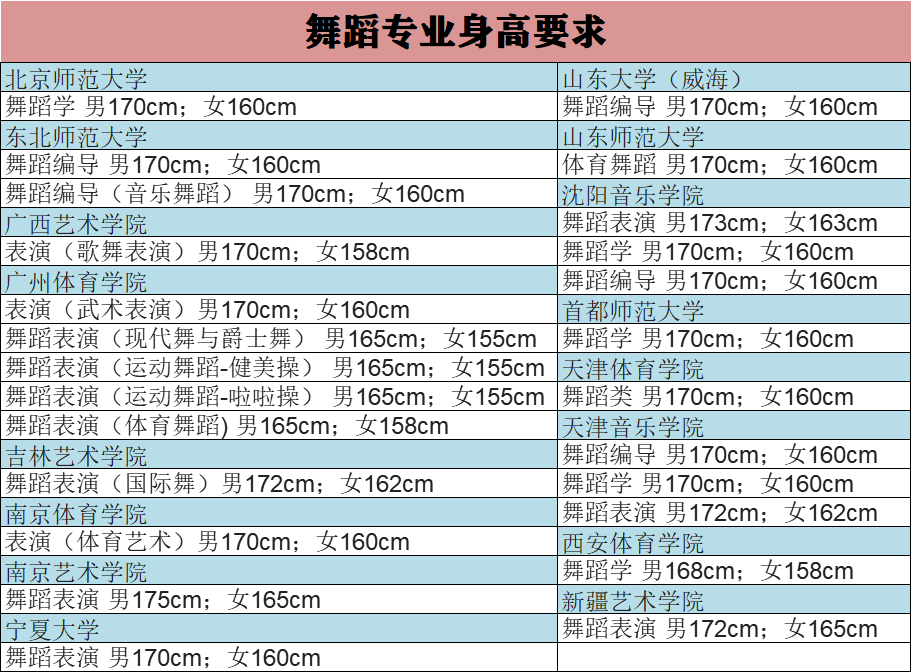 考慮到每年藝考都有不少的考生因身高不足留下遺憾,所以小編特意翻閱了多所院校的招生簡章為大家匯總整理了全國舞蹈院校各專業身高要求,僅供參考!