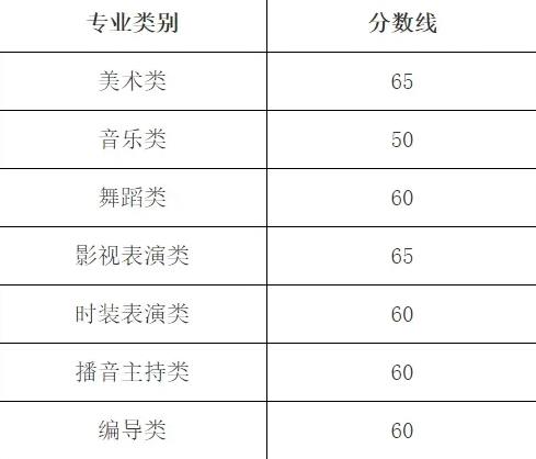 2.戲劇與影視學(xué)類專業(yè)、舞蹈學(xué)類專業(yè)(含體育舞蹈專業(yè))、播音與主持藝術(shù)專業(yè),本專科合格分?jǐn)?shù)線均為60分;