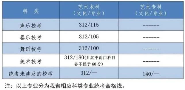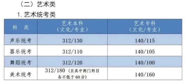 1.美術(shù)與設(shè)計(jì)學(xué)類本科專業(yè)合格分?jǐn)?shù)線為160分,專科專業(yè)合格分?jǐn)?shù)線為60分;