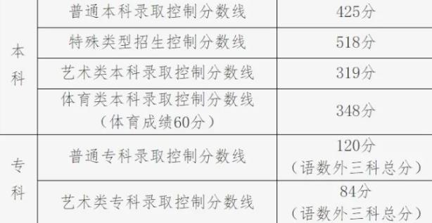 普通本科錄取控制分?jǐn)?shù)線463分
