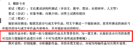 關(guān)于攝影專業(yè)的考試內(nèi)容也更深入,如理論基礎(chǔ)部分出題靈活,一般都結(jié)合實(shí)踐拍攝的情景出題,而攝影史則需要對(duì)中外攝影均有所了解。