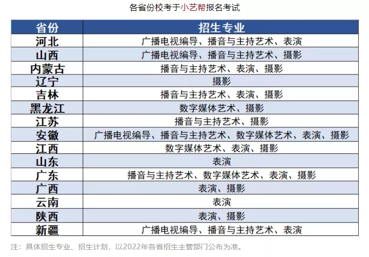 2022年校考招生省份及專業