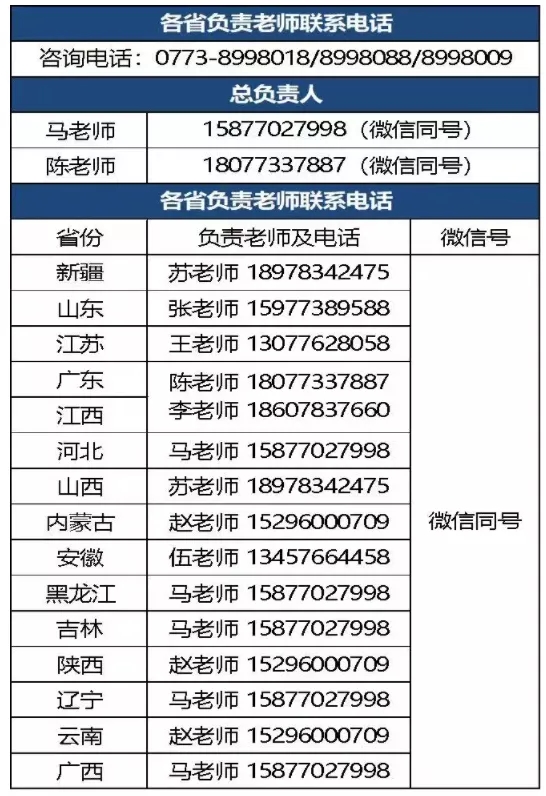 各省市負責老師聯系方式
