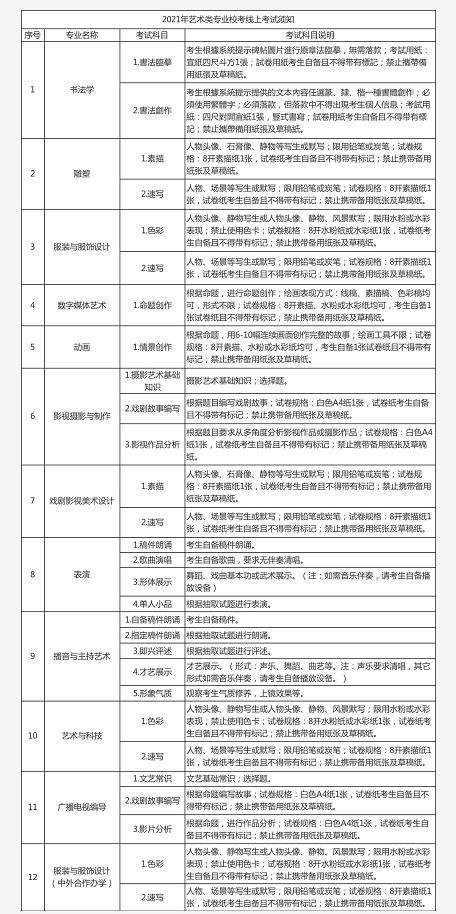 四、2021年藝術類校考專業信息表
