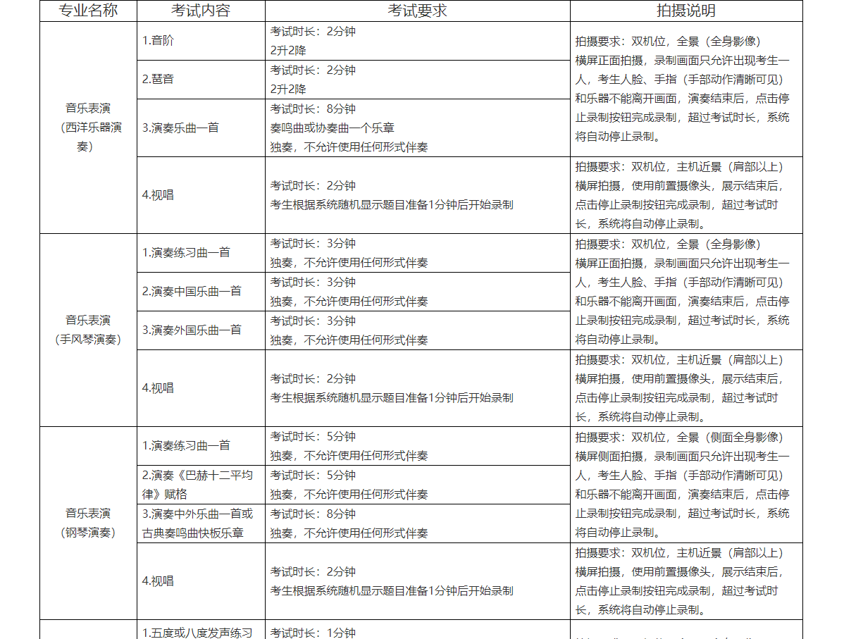 根據(jù)《新疆藝術學院2021年普通本科藝術類專業(yè)招生考試公告》和《新疆藝術學院2021年普通本科招生簡章》,我校2021年部分藝術類專業(yè)采取一次性線上考試方式,現(xiàn)對考試內(nèi)容及考試要求作如下說明: