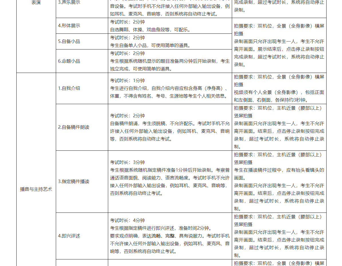 (3)考生根據(jù)報考專業(yè)需要,選擇合適的錄制場地。要求畫面穩(wěn)定,音質(zhì)清晰,能較好地表現(xiàn)考生的聲音面貌,盡量避免逆光、回聲大或嘈雜的環(huán)境。