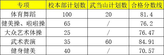 武漢體育學院2022年藝術類校考各專業合格分數線