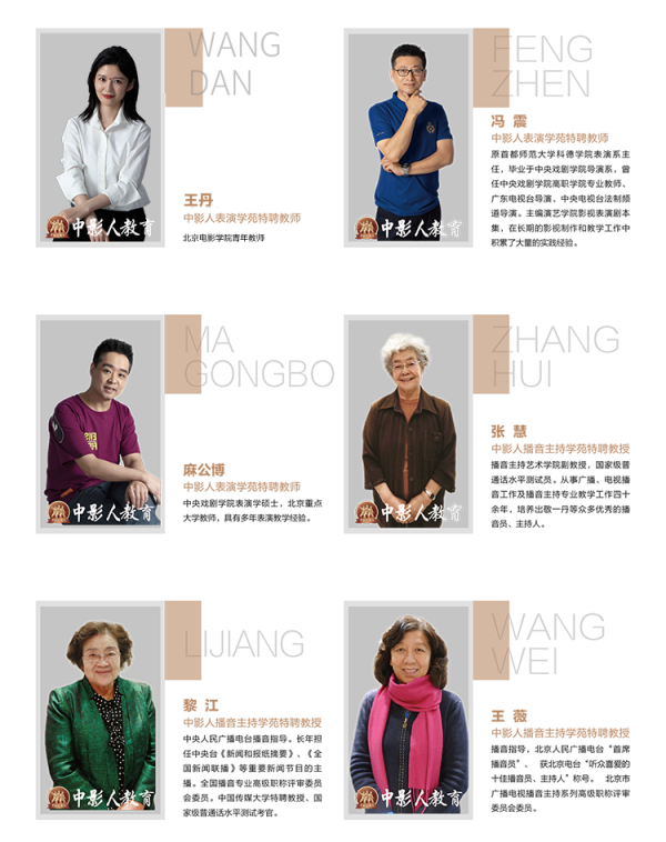 馮 震:北京電影學院碩士,(原某高校表演系主任)、中影人教育表演學苑特聘教師