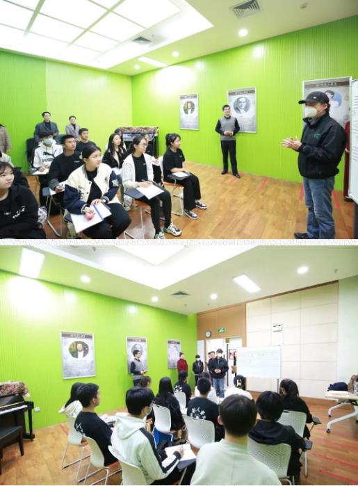 參觀之后,馬洪海教授和李海珍老師走進了中影人教育的聲樂課堂,看到如此前輩的到來,每一位藝考生都十分的激動,聚精會神的聽著前輩們傳授專業學習上的經驗以及對于各位藝考生的寄語。