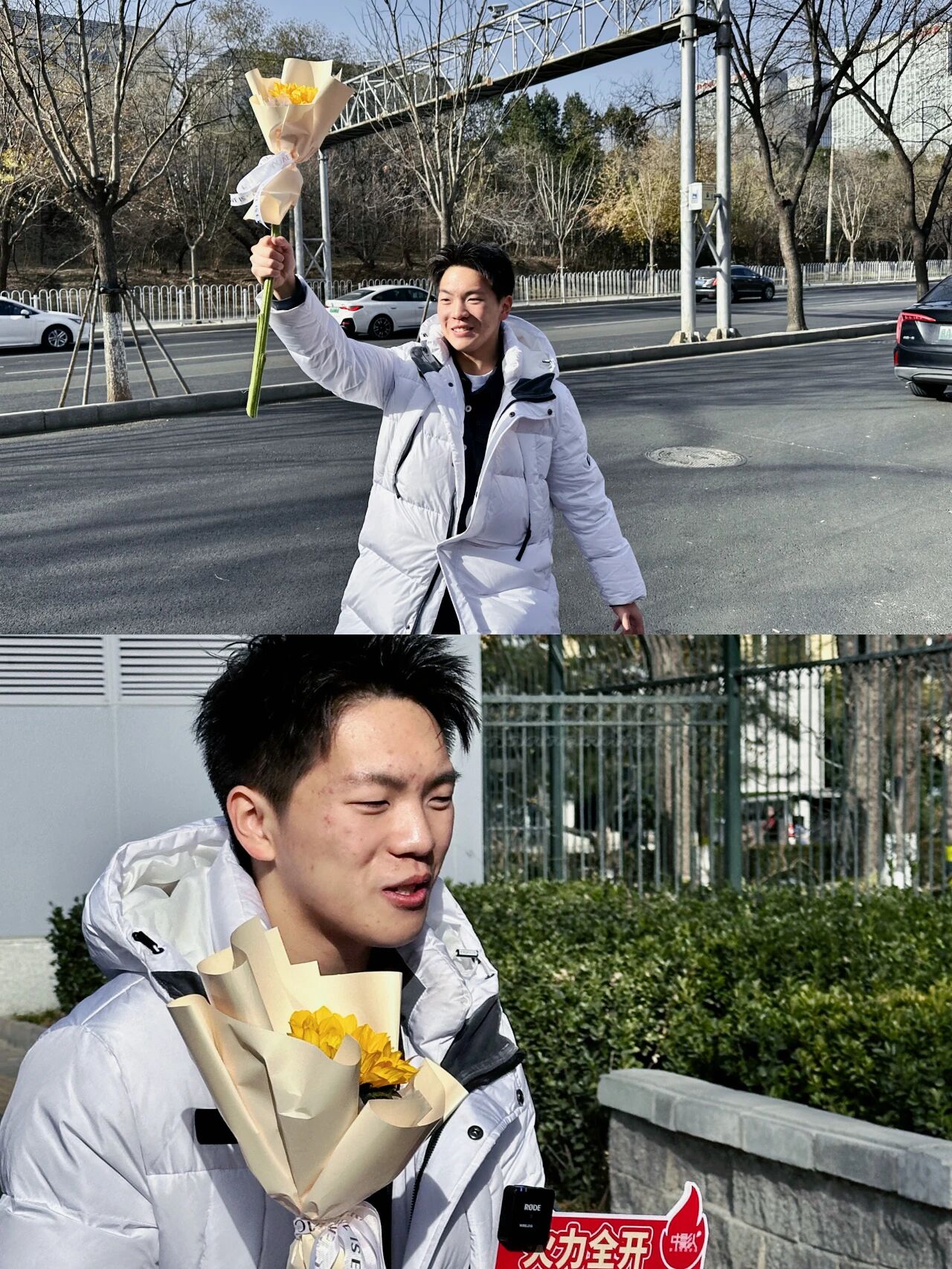為考生遞上熱飲和鮮花用微笑給予肯定和力量。